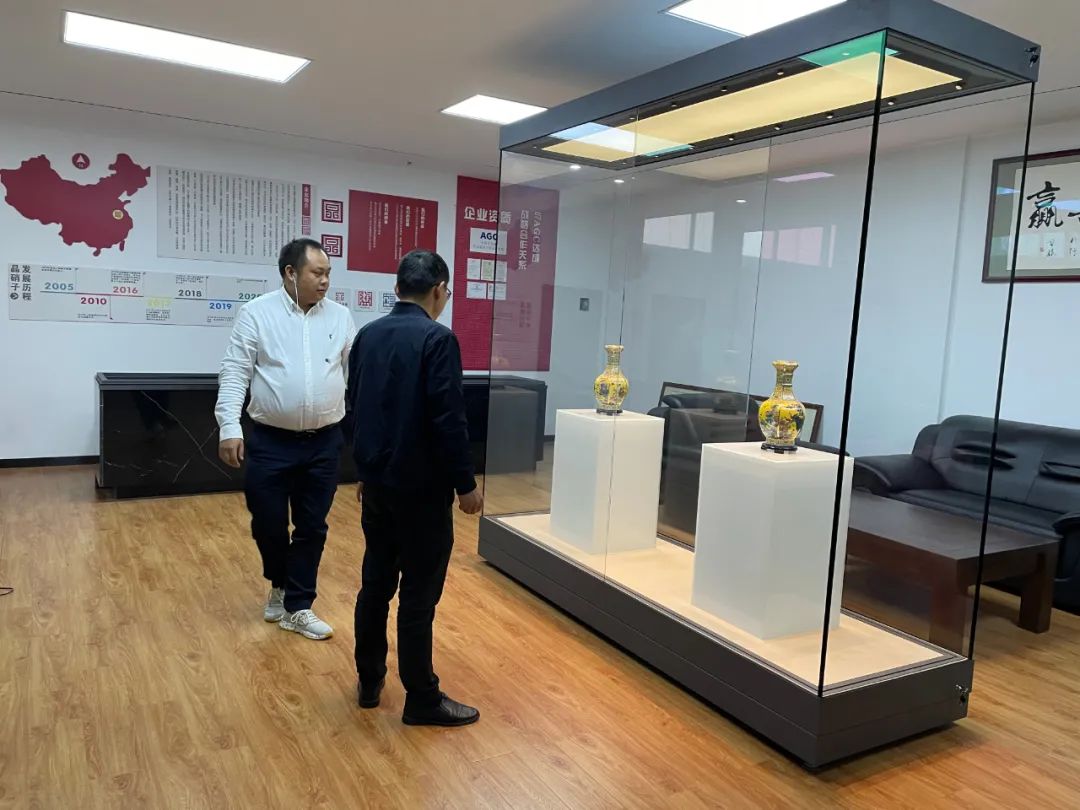 参观过程中总经理宋兴庭介绍了我公司的发展历程及相关业务板块的战略布局和运营情况,英国PDA上海分公司姚总对晶硝子目前的运营情况及今后的战略目标提出了一些宝贵的意见和建议,并分享了他个人的一些人生经验和经历。相互交流是专业、经验共享的重要平台,姚总的分享让我们学到了很多知识,少走很多弯路。在激烈的市场竞争环境下,我们晶硝子始终坚持走科技兴企之路,加强技术开发投入和人才培养。