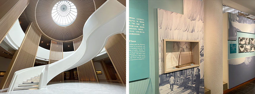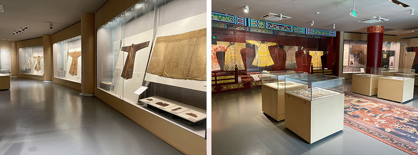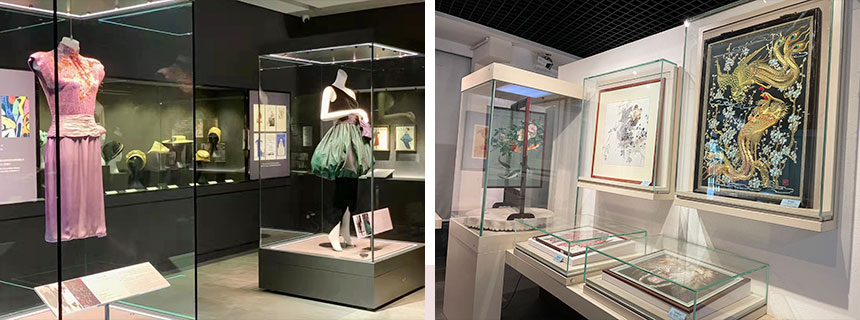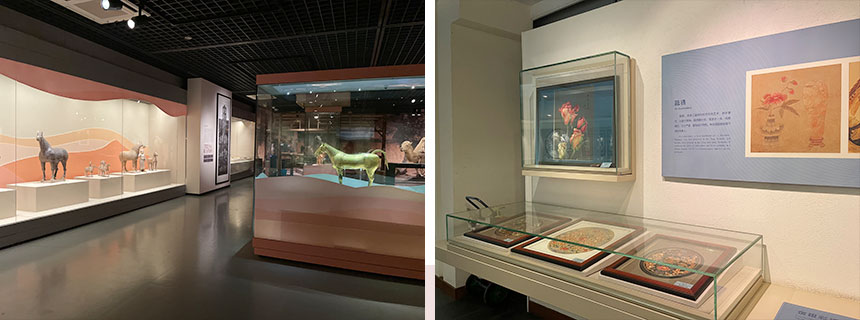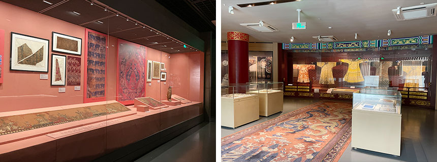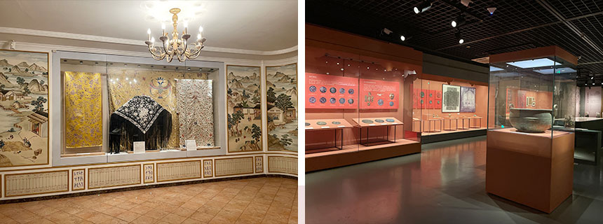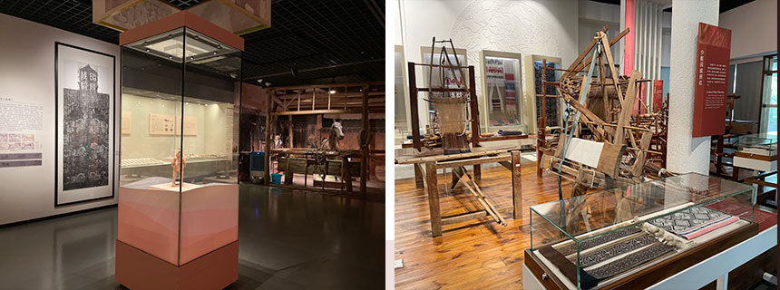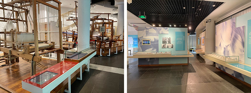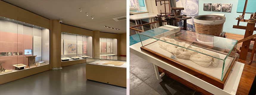 中国丝绸博物馆展示了中国五千年的丝绸历史及文化,其基本陈列包括序厅、历史文物厅、蚕丝厅、染织厅、现代成就厅等五部分。